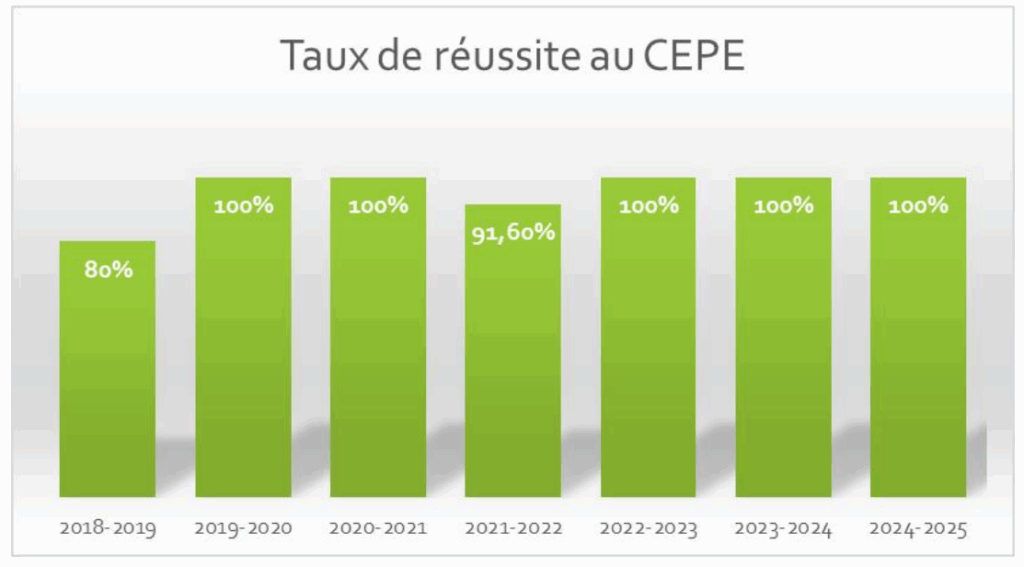 Félicitations à l’ensemble de nos élèves en fin de cycle pour leur succès à l’examen du Certificat d’Études Primaires Élémentaires, le taux de réussite est de 100%.